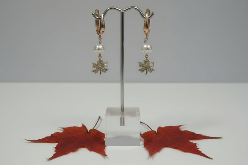 Julie Hawes - Earrings - Sparkly maple leaf with pearl