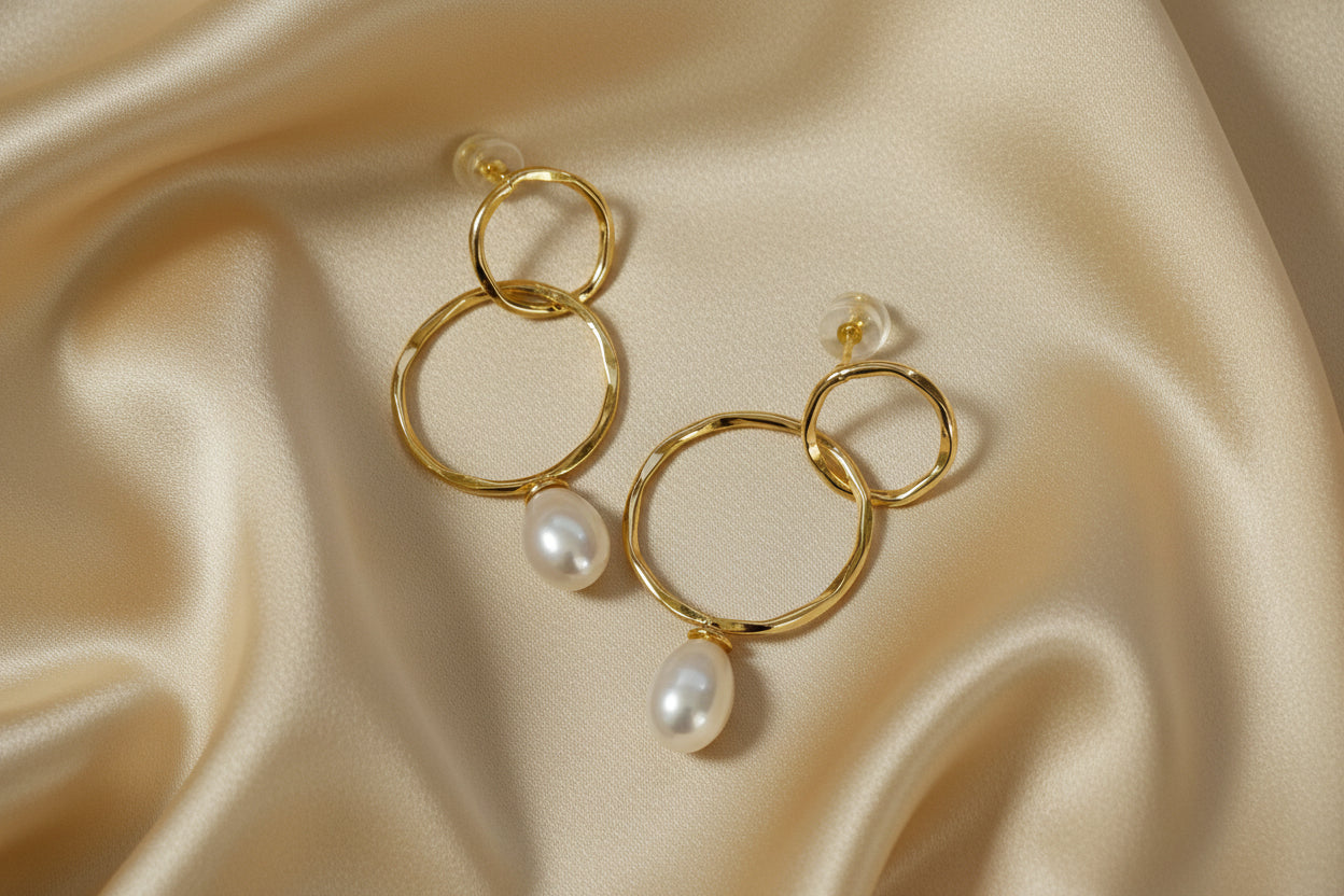 Julie Hawes - Earrings - Gold plated hoops with Freshwater pearl drops