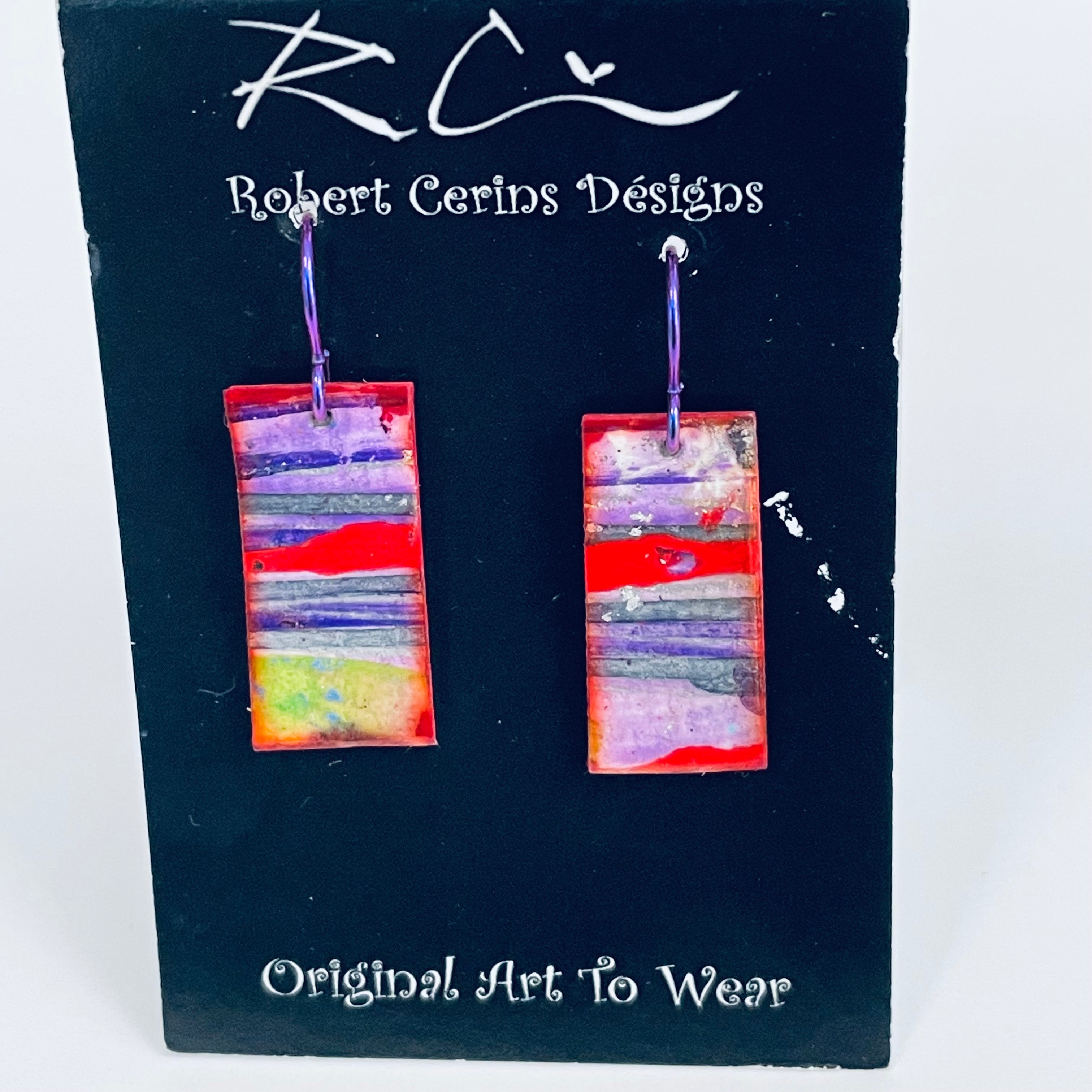 Robert Cerins - Earrings - Red - Multi - Rectangle