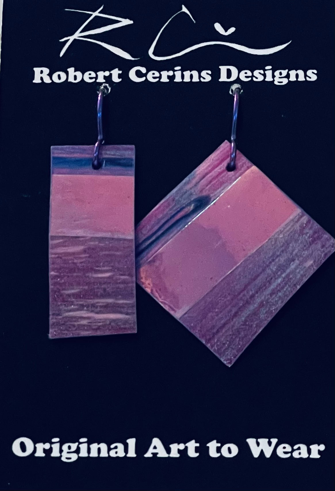 Robert Cerins - Earrings - Purple - Rectangle and Diamond