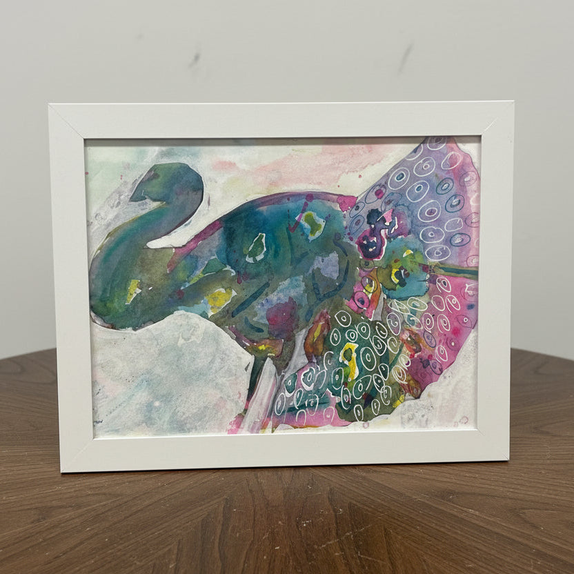 Linda Greig - Painting -"Proud Peacock" - Framed - 5" x 7"