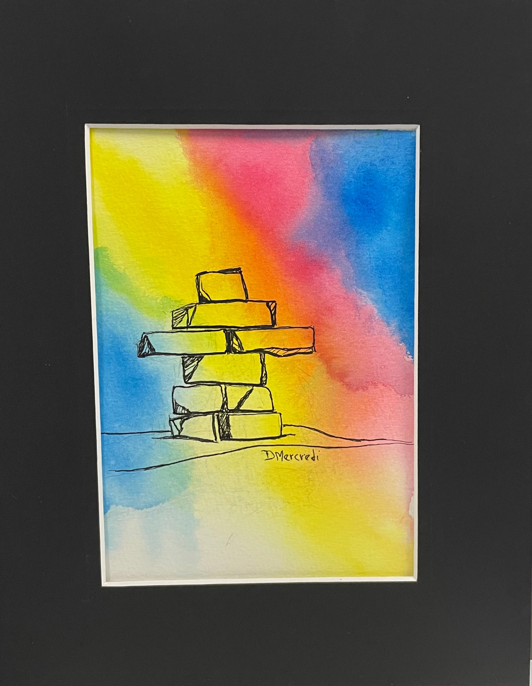 Dianne Mercredi - Pen & Watercolour - Inukshuk - 8" x 10" matted